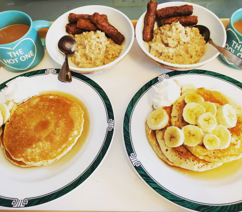 Okay, confession time. I can't cook pancakes for shit so I brought in some help. Those pancakes are too sexy to not showcase.